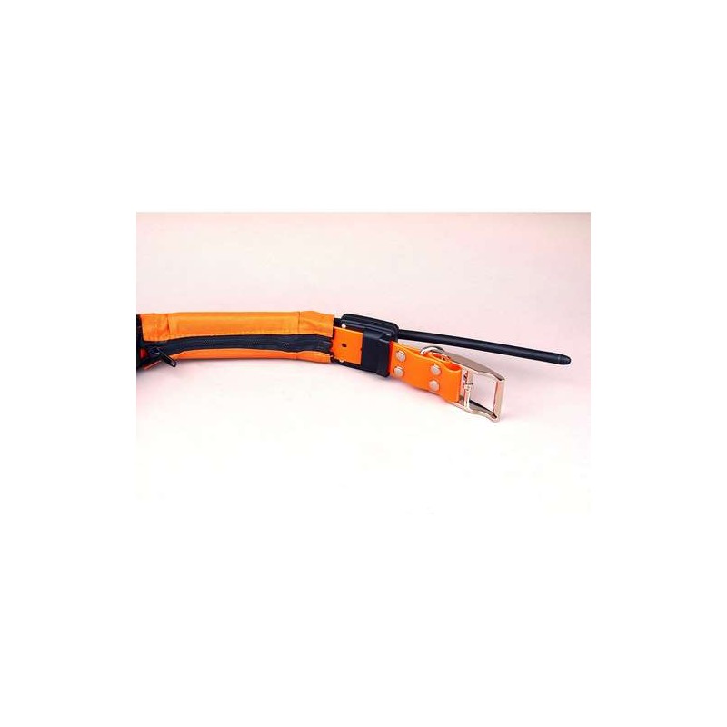 - Collar transmisor. Medidas caja electrónica: 77 x 45 x 46 mm. Peso: 166 g (sin correa). Antena flexible de 30 cm.