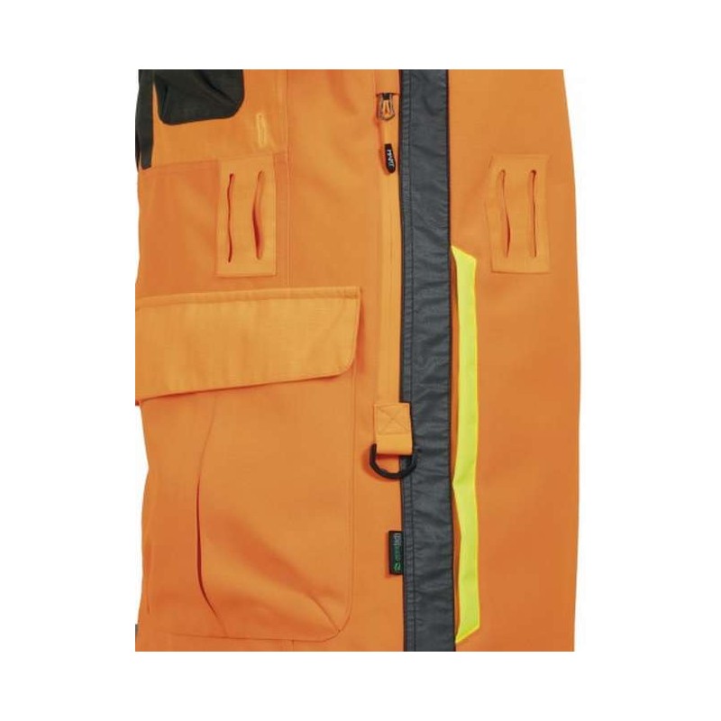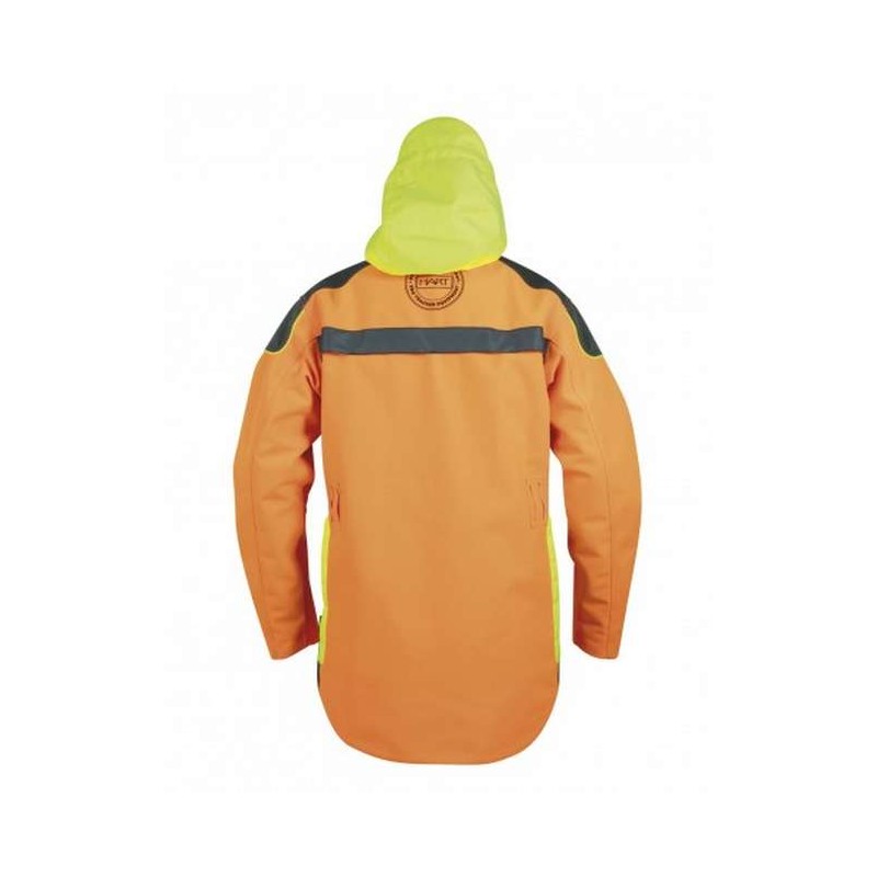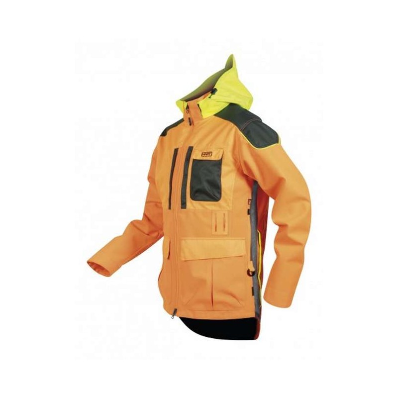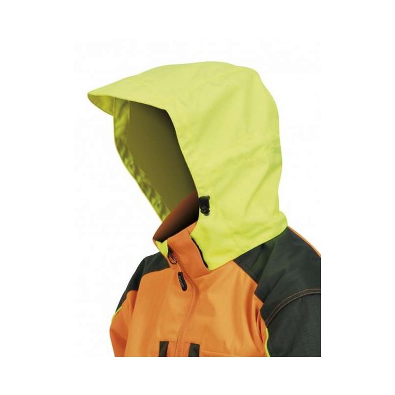 Resistente chaqueta impermeable. Fabricada en robusto tejido blaze 1000D de alta visibilidad.